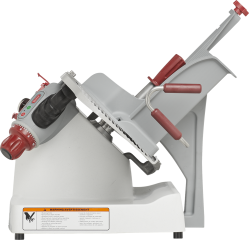 Berkel's X13-PLUS Premier Series slicers offer a hardened, stainless steel 13" knife, a one-piece, NSF-approved polymer base, product table and 1/2 hp motor. Index knobs and start/stop switches are located outside of the drip zone improving cleanability.